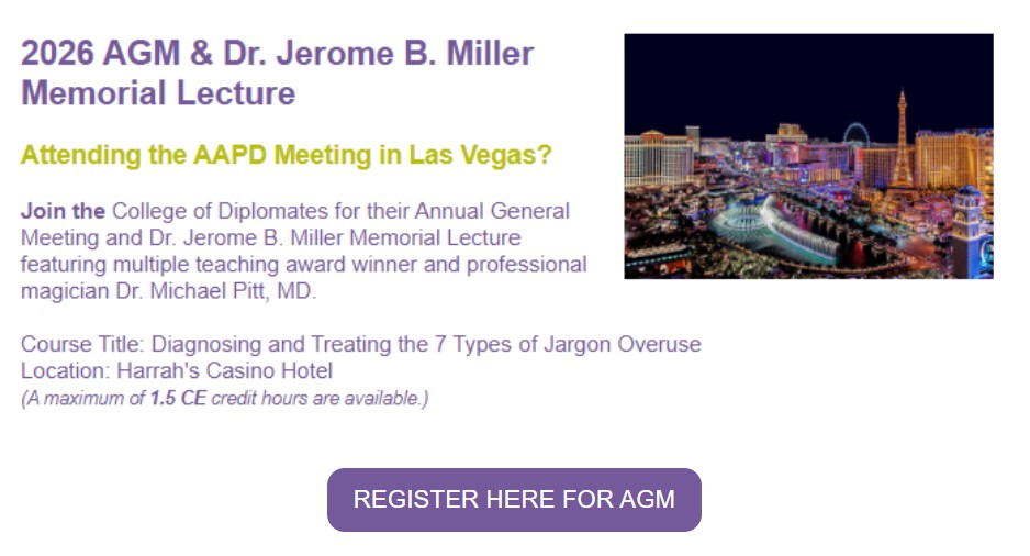 Changes have been presented to and approved by the COD Board of Directors. These changes require a vote and approval by members of the College of Diplomates. Please review the updates below and be prepared to vote during our Annual Meeting & CE Symposium on Saturday, May 23, 2026, in Las Vegas, Nevada.